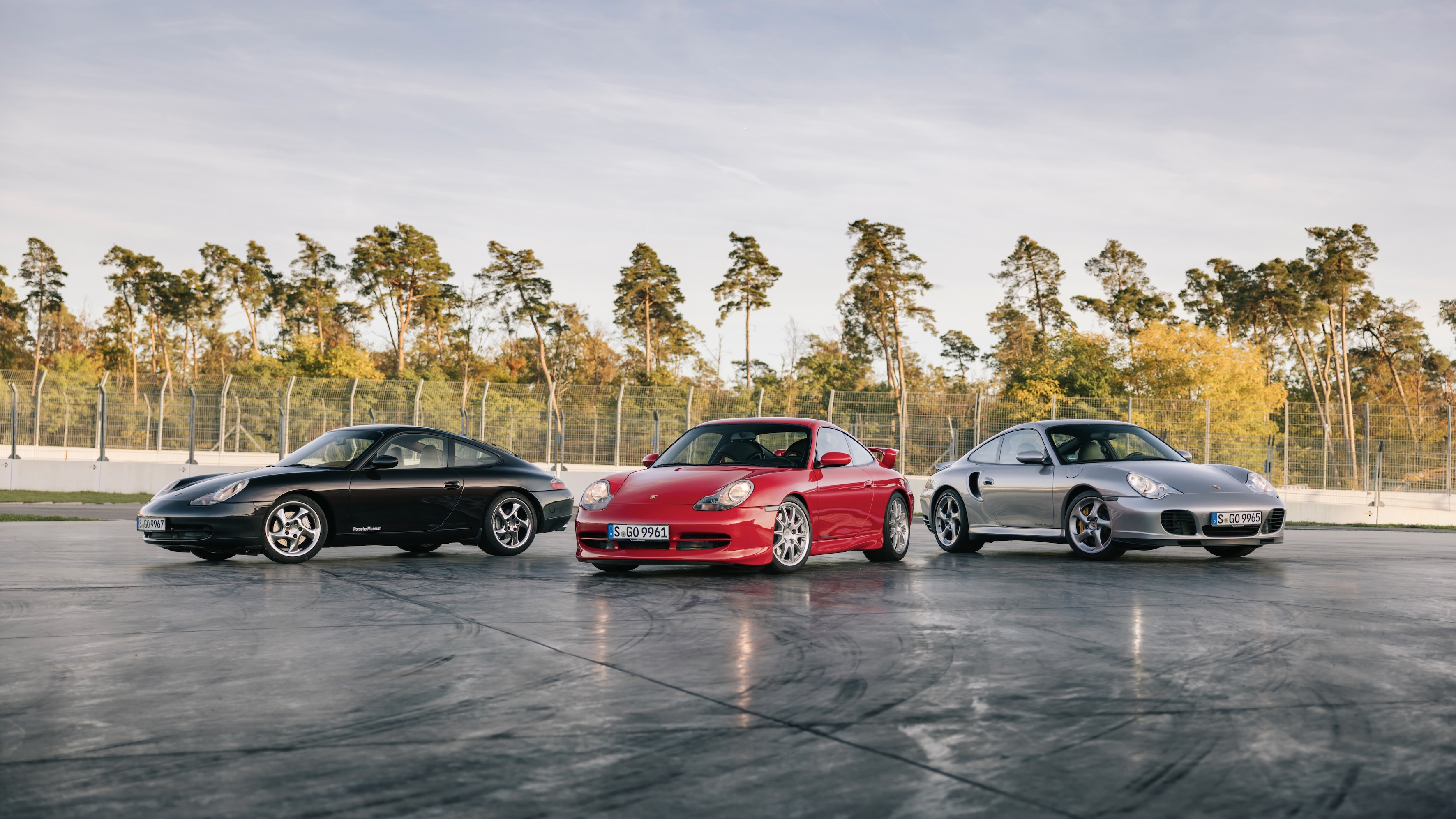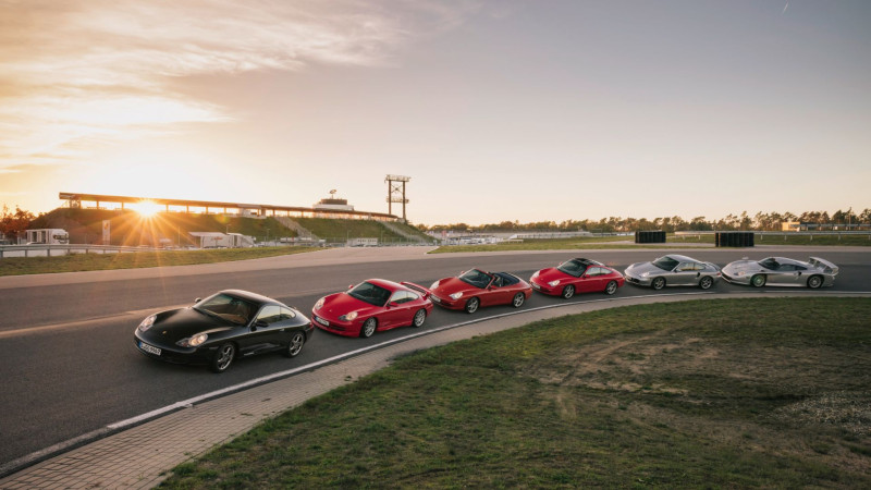 Esimene rida: 911 GT3 (996), 911 Turbo S Coupé (996), 911 Carrera 4 Millennium (996), 911 Carrera 4 Cabriolet (996), tagumine rida: 911 GT1 `98, 911 Targa (996), 911 GT3 RSR, 911 GT1 tänavaversioon, 911 GT3 Cup (996)