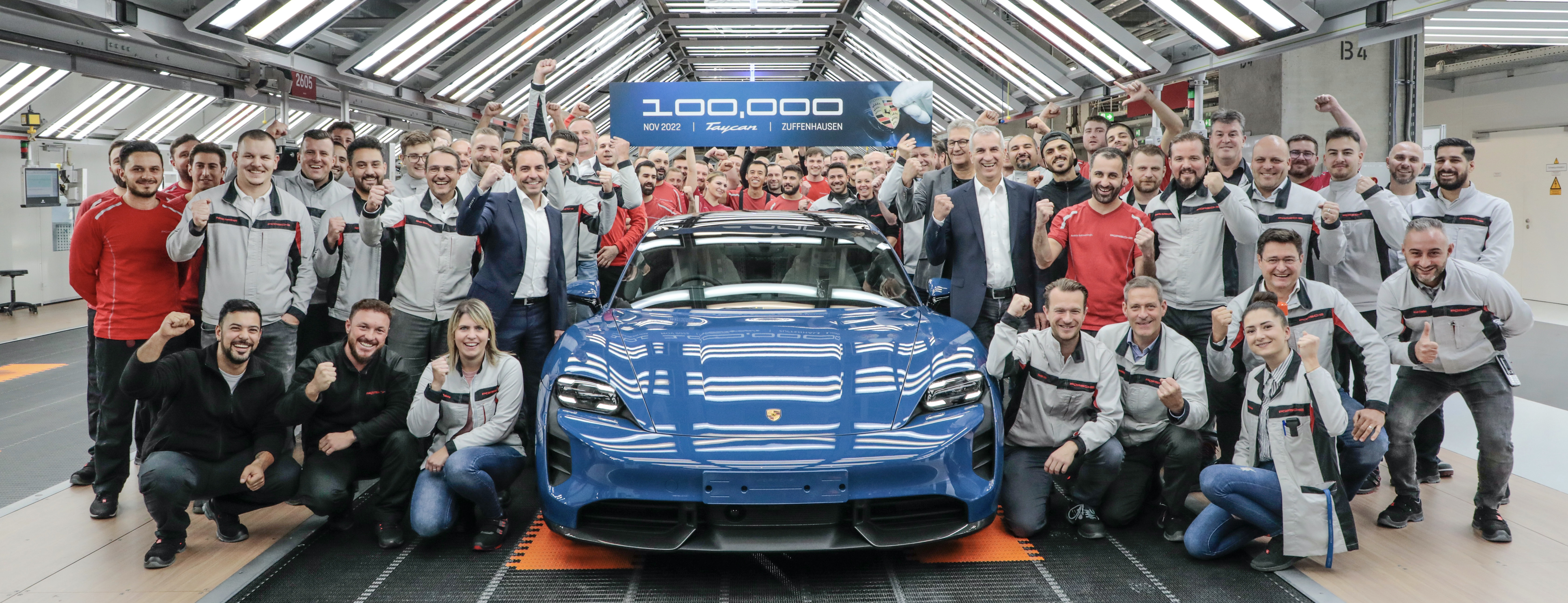 7. novembril veeres tootmisliinilt maha 100 000. Taycan. Juubeliauto lahkus koosteliinilt umbes kolm aastat pärast seda, kui septembris 2019 algas tootmine Zuffenhauseni peatehases. Neptune Blue-värvitoonis Taycan Turbo S oli mõeldud Suurbritanniast pärit kliendile. „Oleme väga rahul, et jõudsime tootmisajaloos sellise verstapostini nii kiiresti vaatamata hiljutistele raskustele, mida põhjustasid pooljuhtide nappus ja pidevalt muutuv olukord koroonarindel,“ ütles Taycani mudelkonna juht Kevin Giek. „Taycaniga tegime ühemõtteliselt eduka stardi elektriajastusse.“