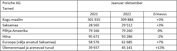 2022. aasta Porsche müüginumbrid maailmas