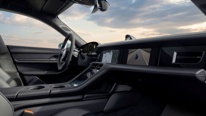 LED-maatriksesituled kuuluvad põhivarustusse. Need saab Taycan Turbo GT-l soovi korral lisatasuta asendada HD-LED-maatriksesituledega. Külgvaates paistavad mitmed süsinikkiust valmistatud osad. Küljeakende raamid on värvitud läikivmustaks.